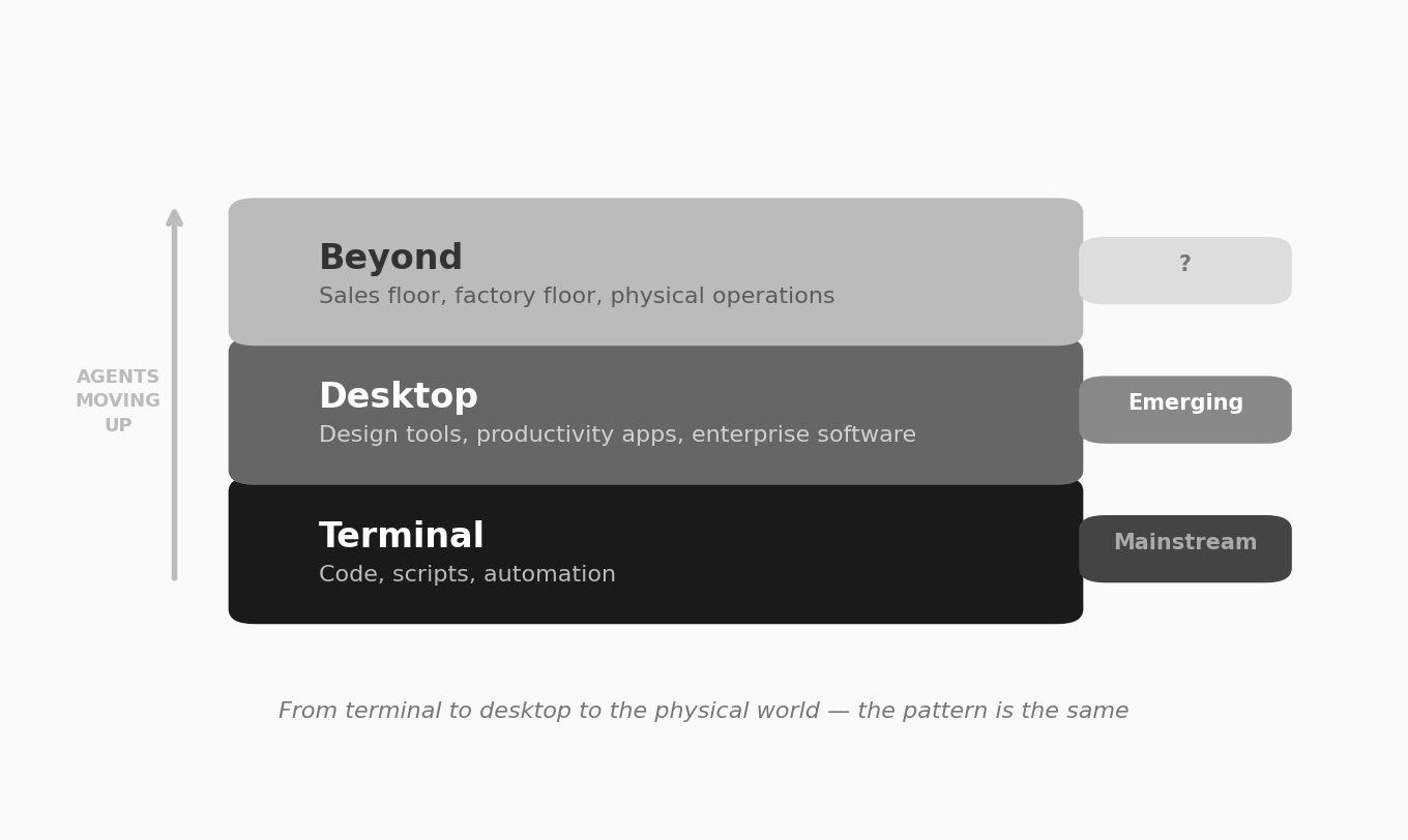 The question is what happens when agents move beyond the terminal — into the software where other kinds of knowledge work actually happen.