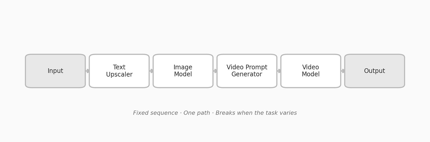 Fixed sequence. One path. Breaks when the task varies.